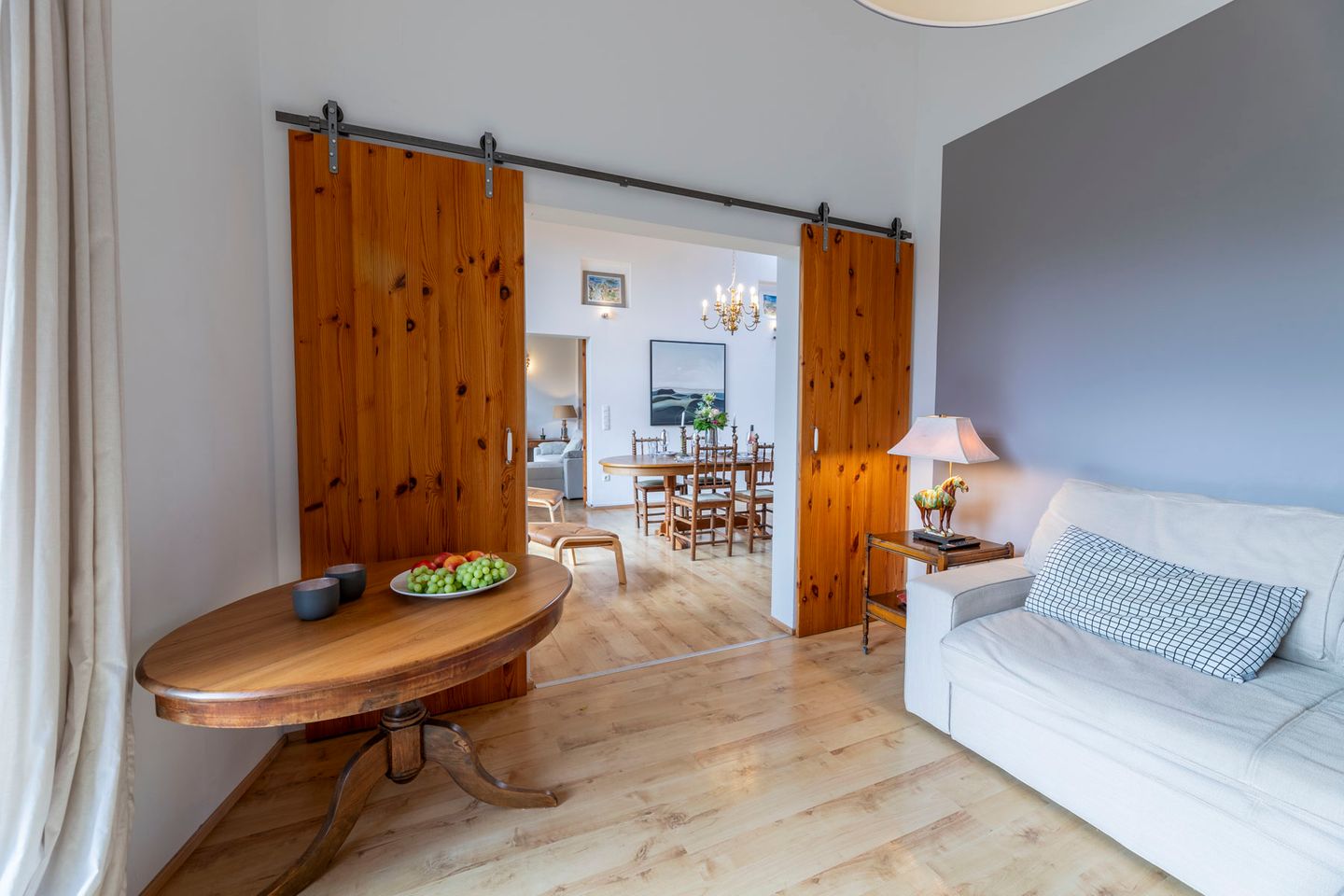 Die zwei getrennten Wohnzimmer, jeweils mit TV und Couchbereich ausgestattet bietet die Möglichkeit für getrennte Rückzugsorte Ein Schreibtisch steht zur Verfügung, falls Sie Arbeiten erledigen möchten. Für Unterhaltung und Entspannung sorgen zwei Digital-TVs, eine HiFi-Anlage, ein CD-Spieler sowie verschiedene Gesellschaftsspiele. Über das verfügbare WLAN bleiben Sie auch im Urlaub stets verbunden.