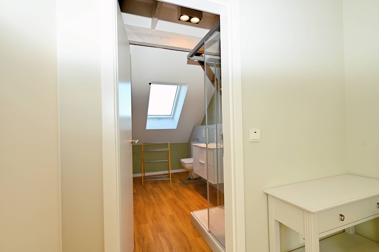 Das Badezimmer verfügt über eine bodengleiche Dusche, Waschbecken, WC, Spiegel, Fenster und warmes Wasser. Ein Haartrockner ist ebenfalls vorhanden. Für zusätzlichen Komfort stehen Ihnen eine Waschmaschine zur Eigennutzung, ein Wäscheständer, eine Kommode, eine Garderobe sowie ein Staubsauger zur Verfügung. WLAN und Internet sind vorhanden, ebenso ein TV und Bücher für ruhige Stunden im Haus.