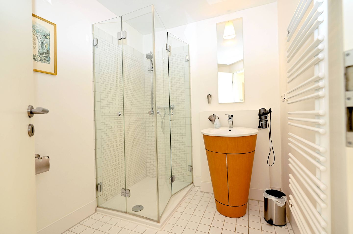 Das Badezimmer ist mit einer Dusche, WC, Waschbecken, Spiegel, Kosmetikspiegel und Haartrockner ausgestattet. Als besonderes Ausstattungsmerkmal verfügt das Appartement zudem über eine Gemeinschaftssauna (gegen Gebühr) mit Ruheraum, die Ihnen zusätzlichen Komfort für erholsame Urlaubstage bietet.