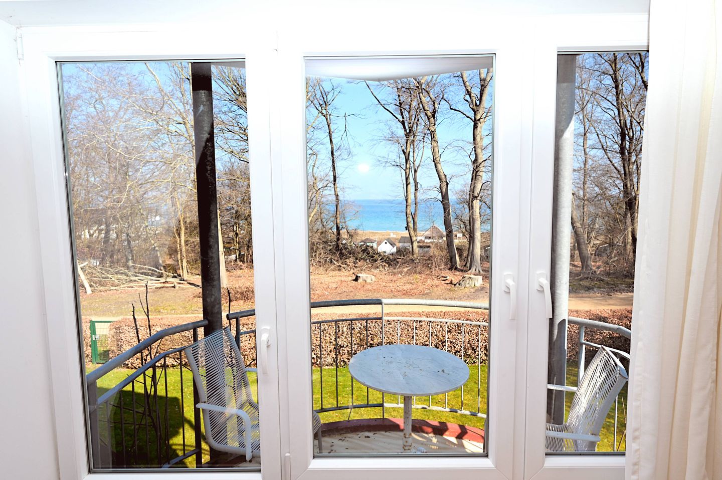 Ein überdachter Balkon mit Gartenmöbeln erweitert den Wohnraum nach außen und lädt dazu ein, frische Luft in geschützter Atmosphäre zu genießen. Die Unterkunft ist eine Nichtraucherunterkunft und wird über eine Zentralheizung beheizt, sodass sie auch in der kühleren Jahreszeit angenehm nutzbar ist. Praktische Ausstattungsdetails wie Bügeleisen, Bügelbrett, Staubsauger und Ganzkörperspiegel ergänzen den Aufenthalt.