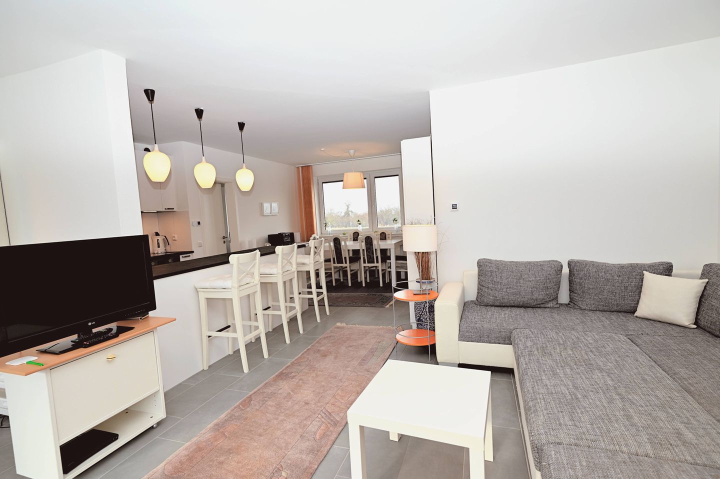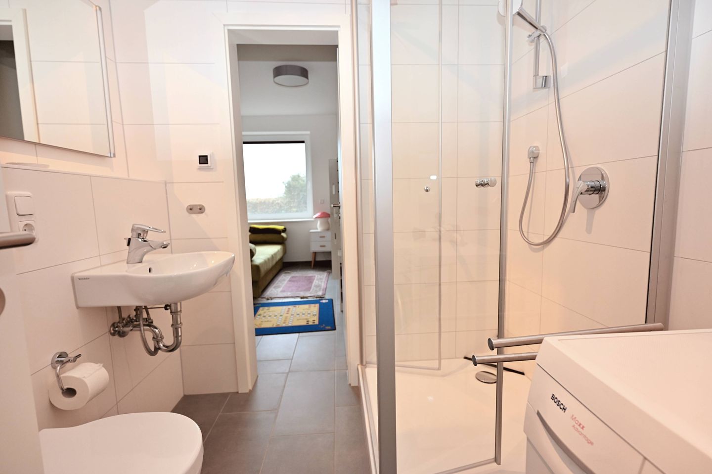 Es sind überall Aussenjalousien vorhanden, die im Esszimmer war leider kaputt. Ein Geheimnis haben wir erst am vorletzten Tag gelöst: Der Lichtschalter für die Lampe über dem Esstisch ist im Schrank neben der Eingangstür versteckt.