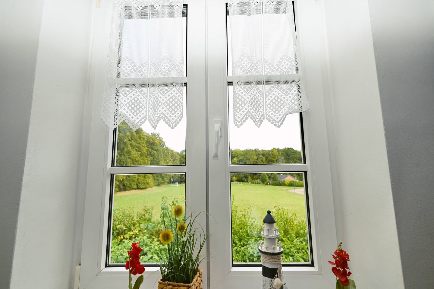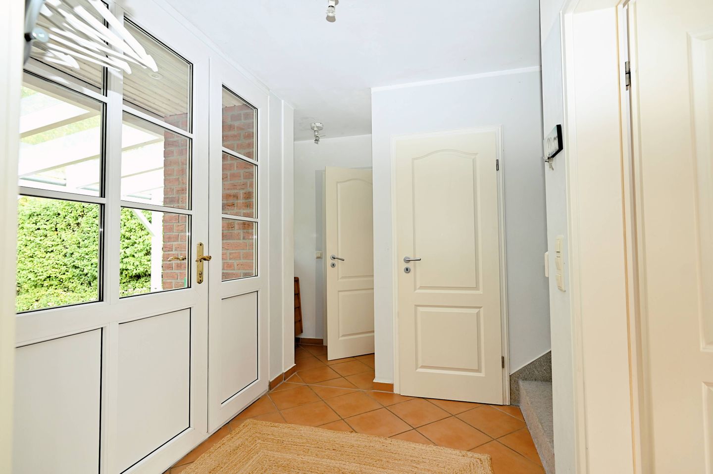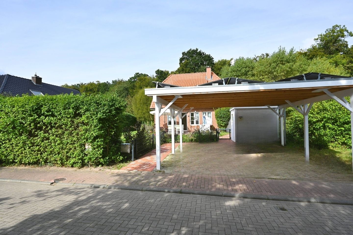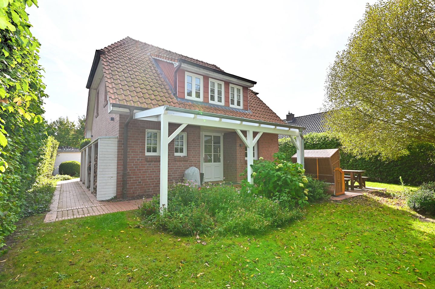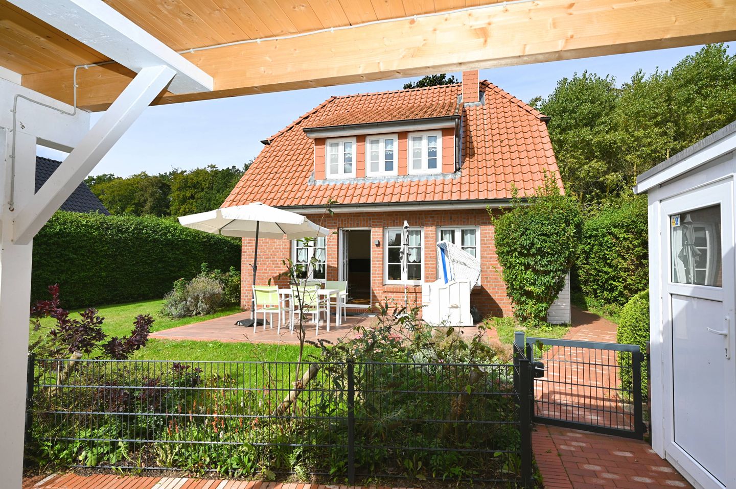 Der eingezäunte Garten verfügt über eine 1200 qm großzügige Liegewiese. Die Terrasse ist mit Strandkorb, Gartenmöbeln und Sonnenliegen ausgestattet.